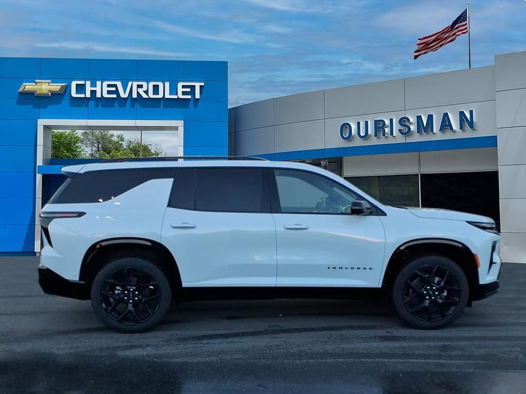 This NEW 2026 Polar White Chevrolet Traverse RS FWD is well equipped and includes these features and benefits:Preferred Equipment Group 1RS, 12 Speakers, 3rd row seats: split-bench, 4-Wheel Disc Brakes, 6-Way Power Front Passenger Seat Adjuster, 8-Way Power Driver Seat Adjuster, ABS brakes, Air Conditioning, Alloy wheels, AM/FM radio: SiriusXM with 360L, Apple CarPlay/Android Auto, Auto High-beam Headlights, Auto tilt-away steering wheel, Auto-dimming door mirrors, Automatic temperature control, Bose Premium 12-Speaker Audio System Feature, Brake assist, Bumpers: body-color, Child-Seat-Sensing Airbag, Compass, Delay-off headlights, Driver 4-Way Power Lumbar Seat Adjuster, Driver door bin, Driver vanity mirror, Dual front impact airbags, Dual front side impact airbags, Electronic Stability Control, Emergency communication system: OnStar, Exterior Parking Camera Rear, Four wheel independent suspension, Front anti-roll bar, Front Bucket Seats, Front Center Armrest, Front dual zone A/C, Front Passenger 4-Way Power Lumbar Seat Adjuster, Front reading lights, Fully automatic headlights, Garage door transmitter, Heated door mirrors, Heated Driver and Front Passenger Seats, Heated front seats, Heated rear seats, Heated steering wheel, Illuminated entry, Low tire pressure warning, Memory seat, Navigation System, Occupant sensing airbag, Outside temperature display, Overhead airbag, Overhead console, Panic alarm, Passenger door bin, Passenger vanity mirror, Perforated Leather-Appointed Seat Trim, Power door mirrors, Power driver seat, Power Dual Glass Panoramic Sliding Sunroof, Power Liftgate, Power passenger seat, Power steering, Power windows, Radio data system, Radio: : Audio System w/17.7 Diagonal Display, Rain sensing wipers, Rear air conditioning, Rear anti-roll bar, Rear reading lights, Rear window defroster, Rear window wiper, Remote keyless entry, Security system, SiriusXM with 360L Trial Subscription, Speed control, Speed-sensing steering, Spoiler, Sport steering wheel, Steering wheel memory, Steering wheel mounted audio controls, Tachometer, Telescoping steering wheel, Tilt steering wheel, Traction control, Trip computer, Turn signal indicator mirrors, Variably intermittent wipers, Ventilated Driver and Front Passenger Seats, Ventilated front seats, Voltmeter, and Wheels: 22 High Gloss Black Painted Aluminum. Preferred Equipment Group 1RS.2.5L DOHC 8-Speed AutomaticAll dealer website prices exclude your state's tax and tag fees. As we work with our 3rd party vehicle listing websites (Autotrader, cars.com, cargurus, etc.) on pricing transparency, the price listed on those sites excludes tax, tags and $800 Dealer Processing Charge (not required by law).