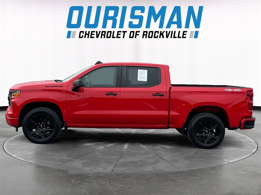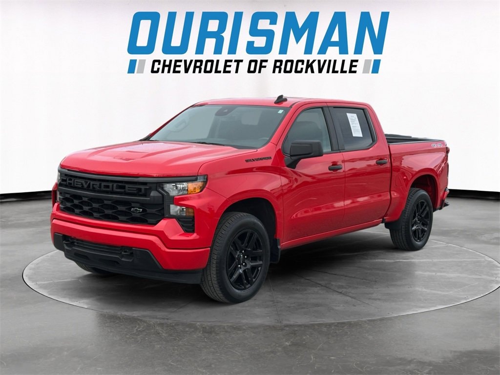 Clean CARFAX. 4D Crew Cab, 8-Speed Automatic, 4WD, Red Hot, Black Cloth, 10-Way Power Driver Seat w/Lumbar, 120-Volt Bed Mounted Power Outlet, 120-Volt Instrument Panel Power Outlet, 3.5 Monochromatic Display Driver Info Center, Black Name Plates (LPO), Bluetooth® For Phone, Chevrolet Connected Access Capable, Color-Keyed Carpeting Floor Covering, Compass, Custom Convenience Package, Custom Value Package, Dark Essentials Package (LPO), Deep-Tinted Glass, Dual Rear USB Ports (Charge Only), Electric Rear-Window Defogger, Electrical Steering Column Lock, Electronic Cruise Control, EZ Lift Power Lock & Release Tailgate, Front Frame-Mounted Black Recovery Hooks, Front Rubberized Vinyl Floor Mats, HD Rear Vision Camera, Hitch Guidance, LED Cargo Area Lighting, Manual Tilt Wheel Steering Column, OnStar & Chevrolet Connected Services Capable, Power Front Windows w/Driver Express Up/Down, Power Front Windows w/Passenger Express Down, Power Rear Windows w/Express Down, Preferred Equipment Group 1CX, Rear 60/40 Folding Bench Seat (Folds Up), Rear Rubberized-Vinyl Floor Mats, Remote Keyless Entry, Remote Vehicle Starter System, SiriusXM Radio, Standard Tailgate, Theft Deterrent System (Unauthorized Entry), Trailering Package, Wi-Fi Hot Spot Capable, Wireless Phone Projection. 2.7L Turbo 8-Speed Automatic